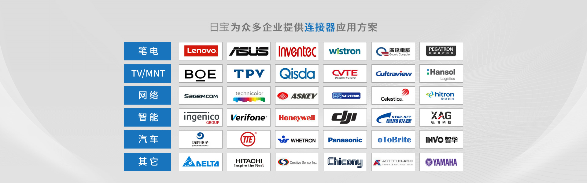 深圳市日寶電子科技有限公司創(chuàng)立于2015年,總部位于蘇州吳江區(qū),總部公司成立于2005年,是一家專(zhuān)業(yè)從事精密連接器設(shè)計(jì)、制造及銷(xiāo)售的高新科技企業(yè)。產(chǎn)品廣泛應(yīng)用于消費(fèi)電子、汽車(chē)電子、網(wǎng)絡(luò)通訊及工業(yè)電子設(shè)備、軍工、航天航空、醫(yī)療器械等領(lǐng)域。目前公司產(chǎn)品除本土市場(chǎng)外,更遠(yuǎn)銷(xiāo)歐、美、日等海外市場(chǎng)。 日寶電子注重長(zhǎng)遠(yuǎn)發(fā)展,先后取得ISO9001/14001質(zhì)量與環(huán)境管理體系、IATF16949汽車(chē)質(zhì)量管理體系、ISO13485醫(yī)療器械質(zhì)量管理體系、UL,GB/T29490知識(shí)產(chǎn)權(quán)管理體系等認(rèn)證, 并加入HDMI、USB等協(xié)會(huì)。 為提升企業(yè)核心競(jìng)爭(zhēng)力,公司大力推進(jìn)信息化與工業(yè)化的兩化融合建設(shè),先后導(dǎo)入ERP、PLM、CRM、SRM、MES及OA等系統(tǒng)管理軟件,不斷自我提升,為打造新一代智能制造標(biāo)桿企業(yè)不懈努力。 日寶電子擁有業(yè)界專(zhuān)業(yè)的電氣與機(jī)構(gòu)研發(fā)技術(shù)團(tuán)隊(duì),相繼獲得260余項(xiàng)發(fā)明和實(shí)用新型專(zhuān)利,在這日新月異的科技時(shí)代,堅(jiān)持以技術(shù)創(chuàng)新為導(dǎo)向,深度服務(wù)客戶(hù)...